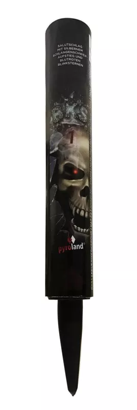 BKS-1 ist ein effektstarkes Bombenrohr mit gerader Ausrichtung und kräftigem Zerleger. Der Aufstieg erfolgt als Schlangenschweif, Feuertopf mit violetten Blinksternen und heftigem Silberblitz – ideal für gezielte Einzelzündungen oder als Highlight zwischen Batterien.