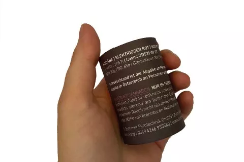 Heute kommt der ELEKTRIGGER zu Euch – und der triggert ganz schön! Grelle rote Blinkerbengalos mit Verwandlung zu heftigem Crackling. 5 Stück pro Schachtel in echt handlicher Größe. Diese Dinger machen wirklich Spaß auf der Straße! Man sollte natürlich nicht direkt in den Blitz blicken, eher in die Umgebung, dann blitzen die umliegenden Häuser farbintensiv Rot .