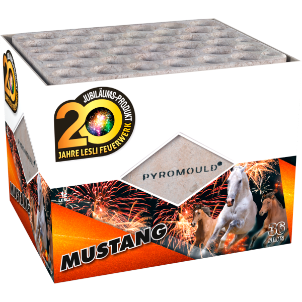 Er ist wieder da! Der Mustang beginnt ruhig mit knisternden Kokosnuss Effekten. Unmittelbar danach geht es los. Aus zweier-salven werden bunte Effekte in einer guten Steighöhe in die Luft geschleudert. Prächtiges oranges Finale. 36-Schuss.